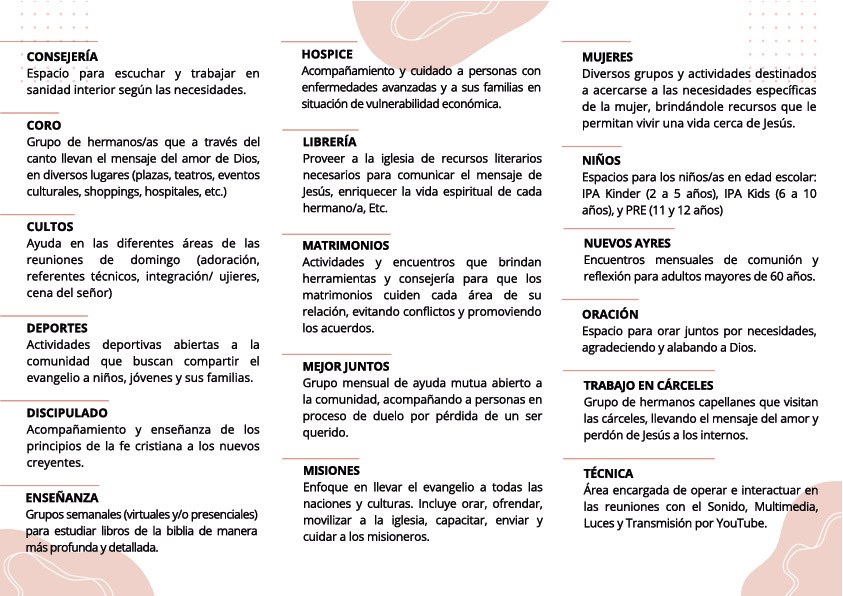 Aquí encontrarás todas las actividades de la iglesia ordenadas por fecha. Haciendo clic en Saber Más, podrás encontrar el detalle y agendarla en tu calendario.